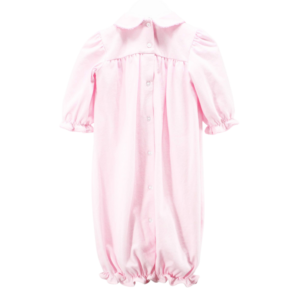 • Sweet pink day gown with delicate hand-smocked detail across the chest