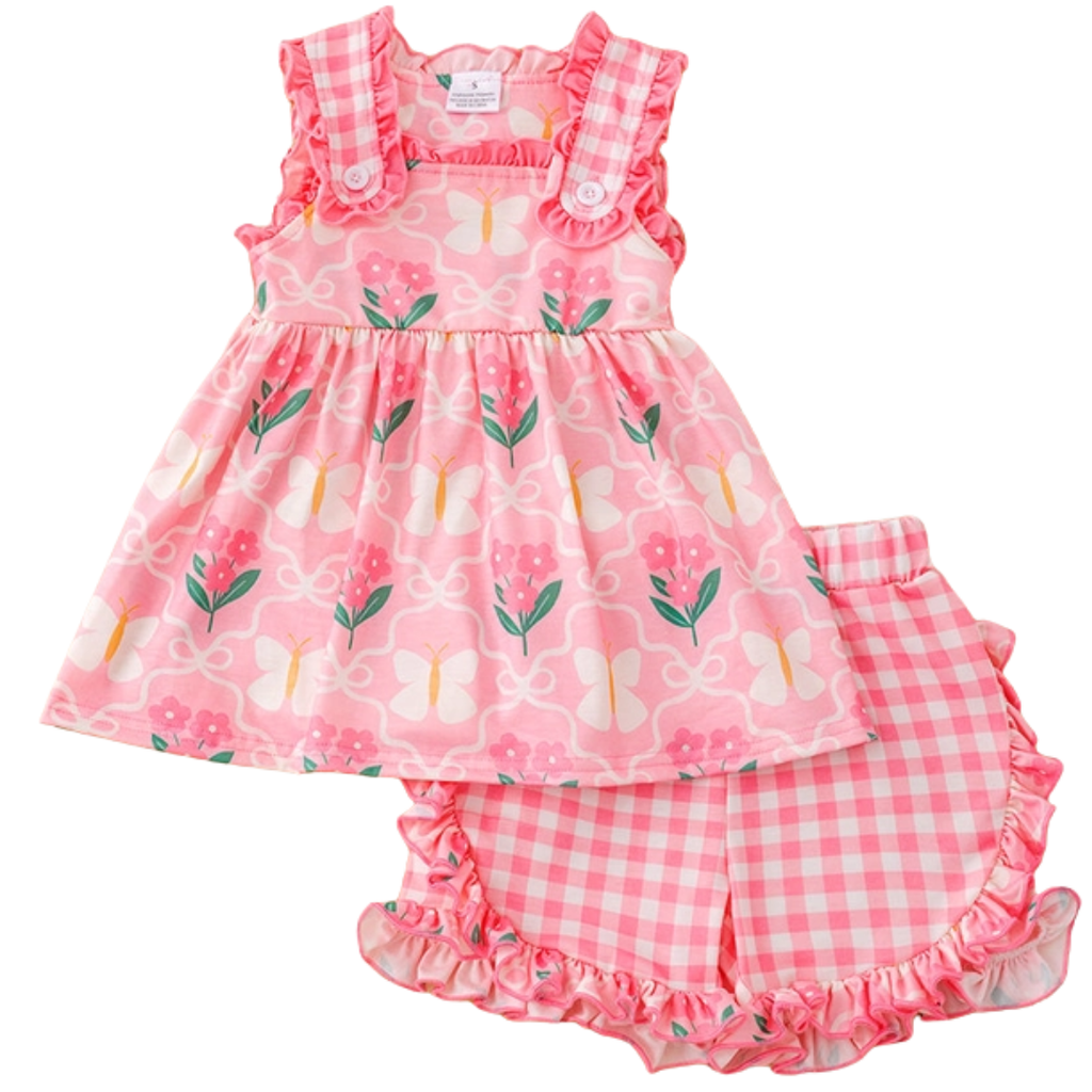 Pink Butterfly and Floral/Gingham Short Set