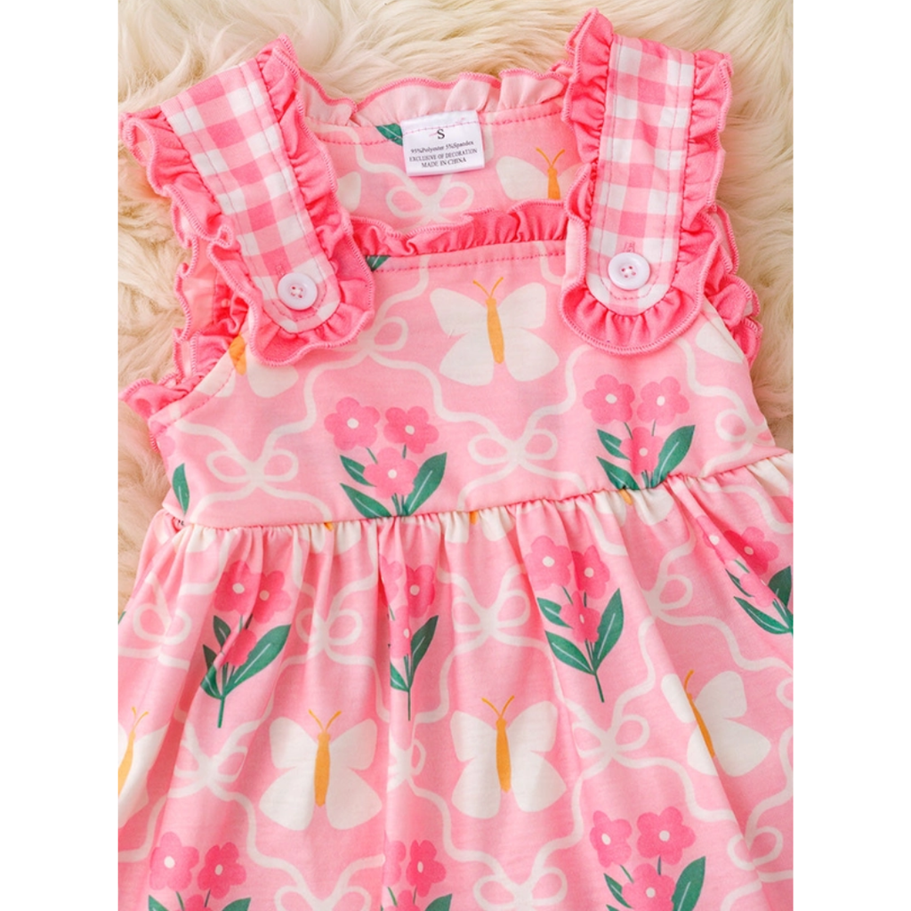 Charming Pattern Mix – A sweet blend of pink gingham, florals, and butterfly accents creates a playful yet timeless look.