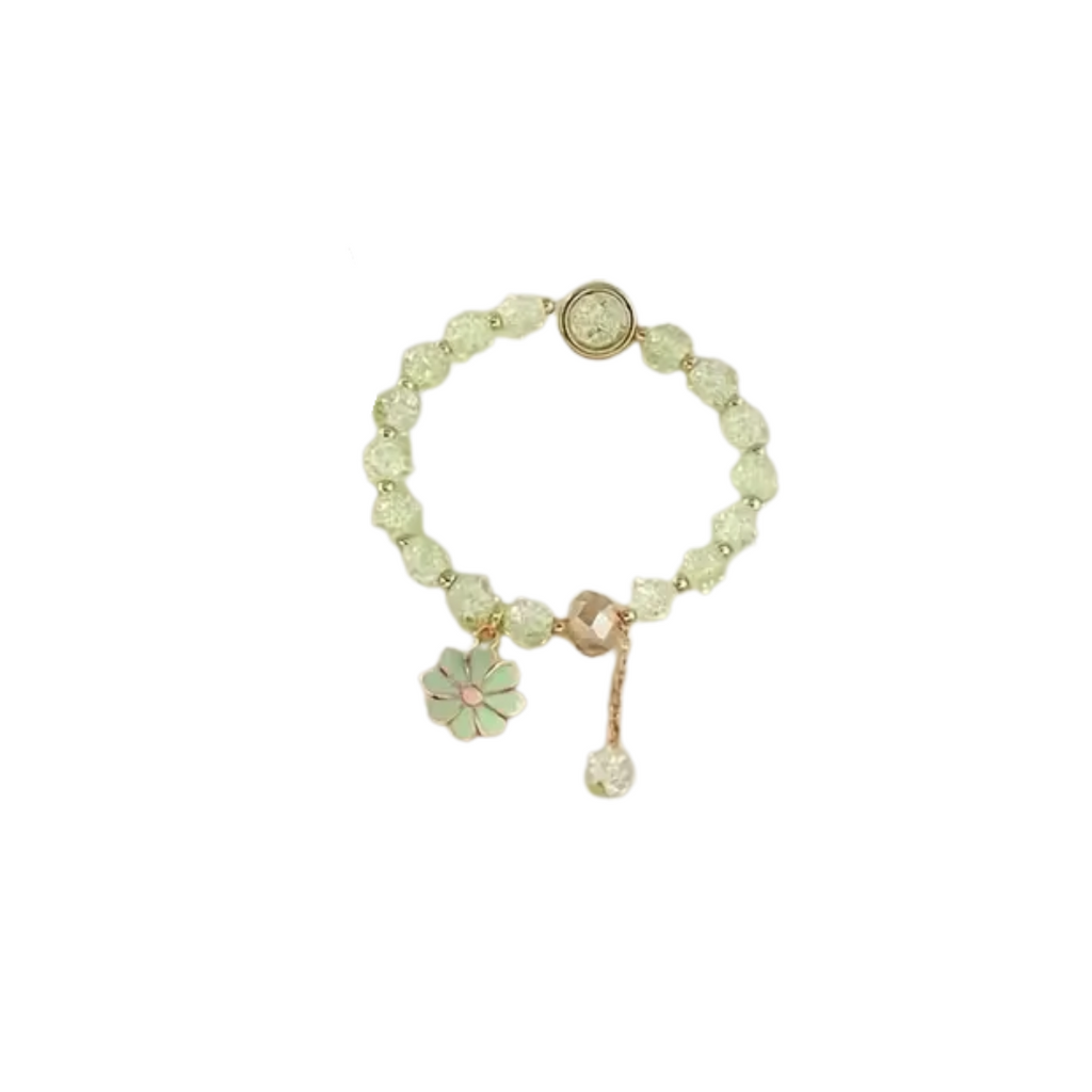 Elegant Floral Design: This set includes six delicate bracelets, each featuring a unique glass bead color and a charming floral enamel pendant with a matching bead tassel.