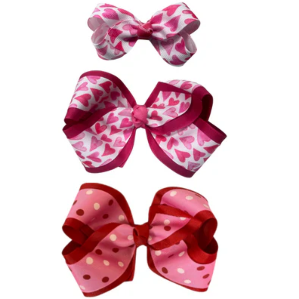 Sweet Valentine Style – Show your love with these adorable pink and red Valentine’s Day bows, perfect for adding a festive touch to any outfit