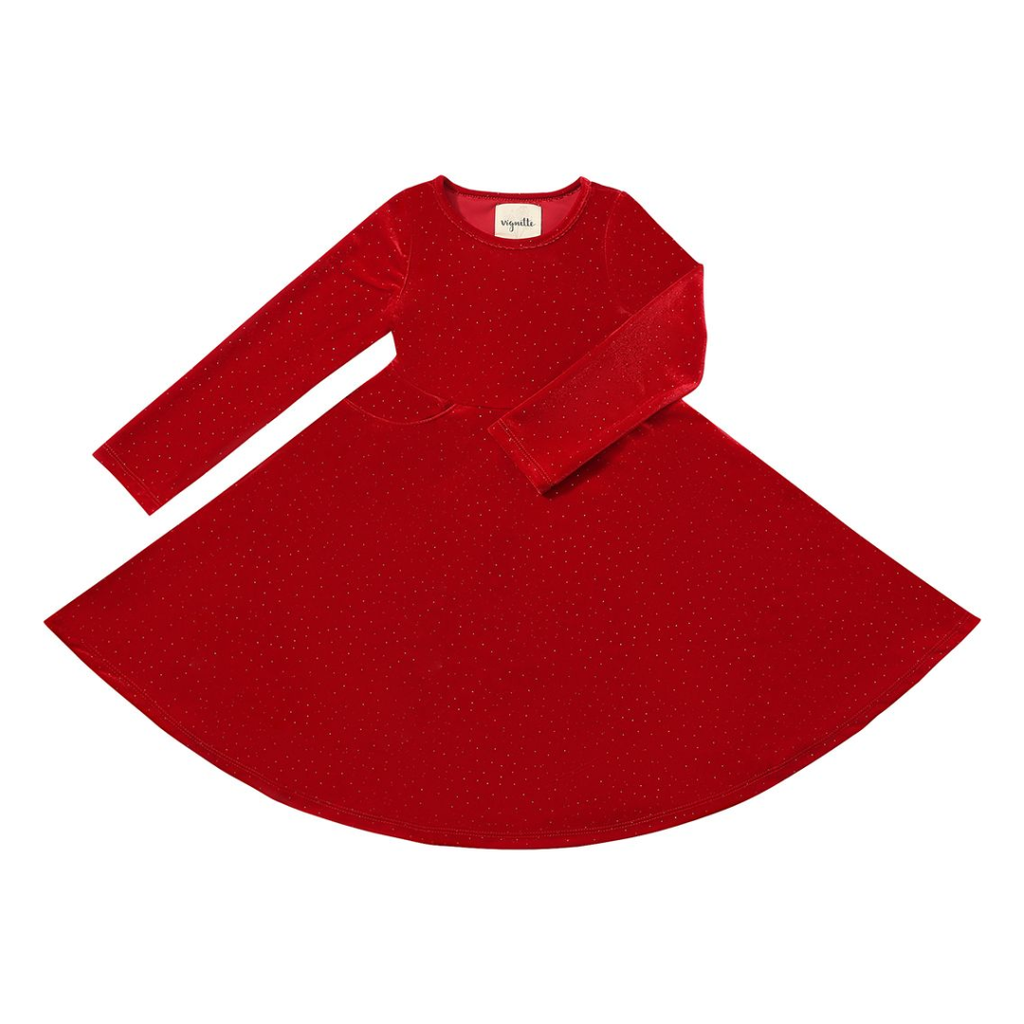 Festive red dress with subtle metallic shimmer for a holiday-ready look