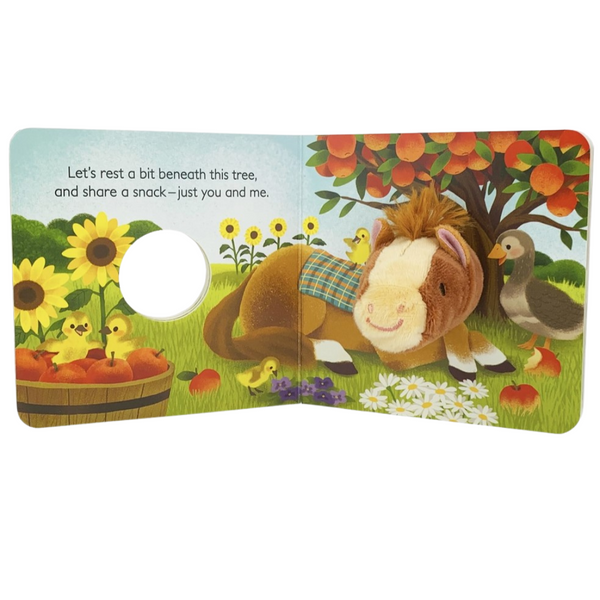 Features an interactive horse finger puppet that brings storytime to life