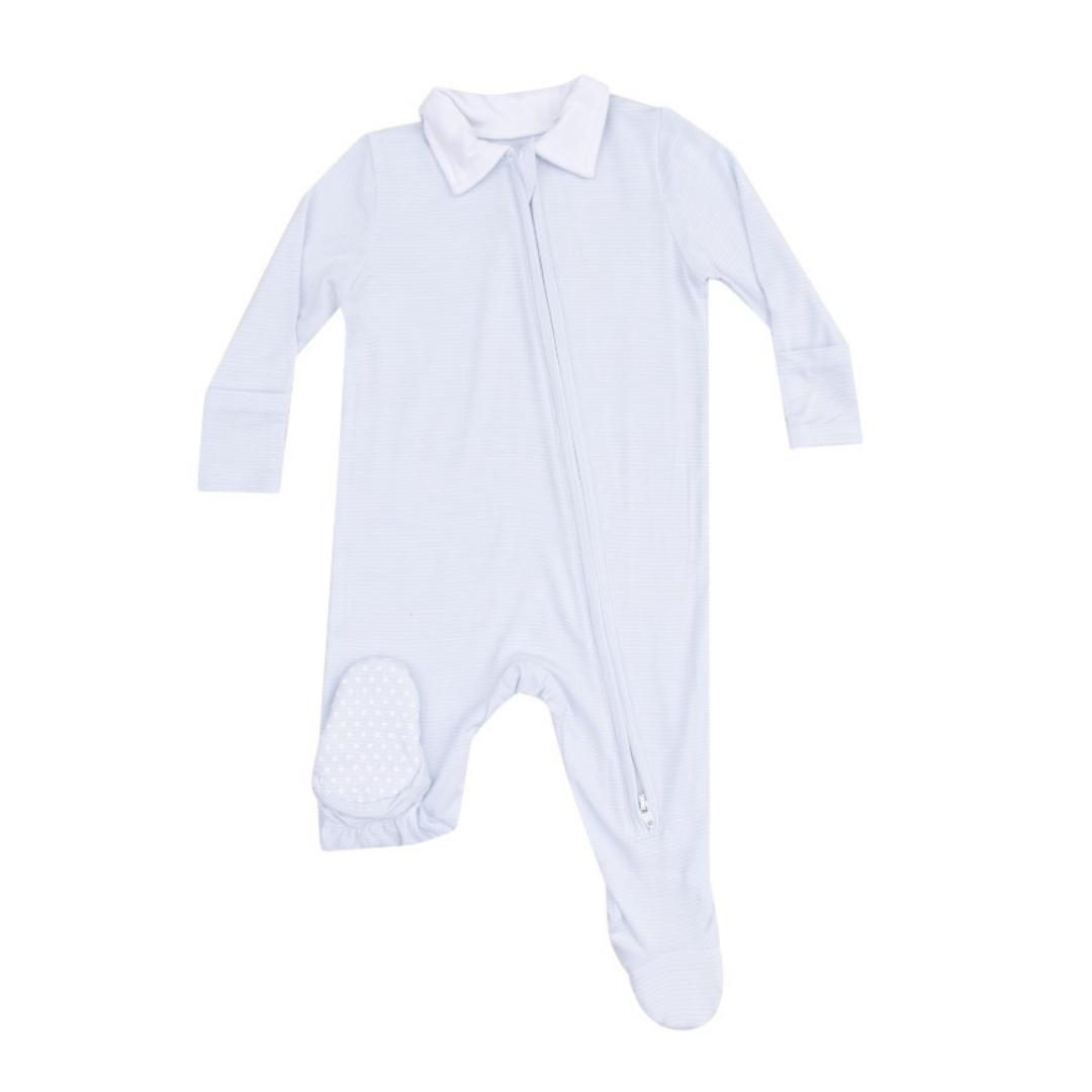 Stripe Classic Blue Polo 2 Way Zipper Footie